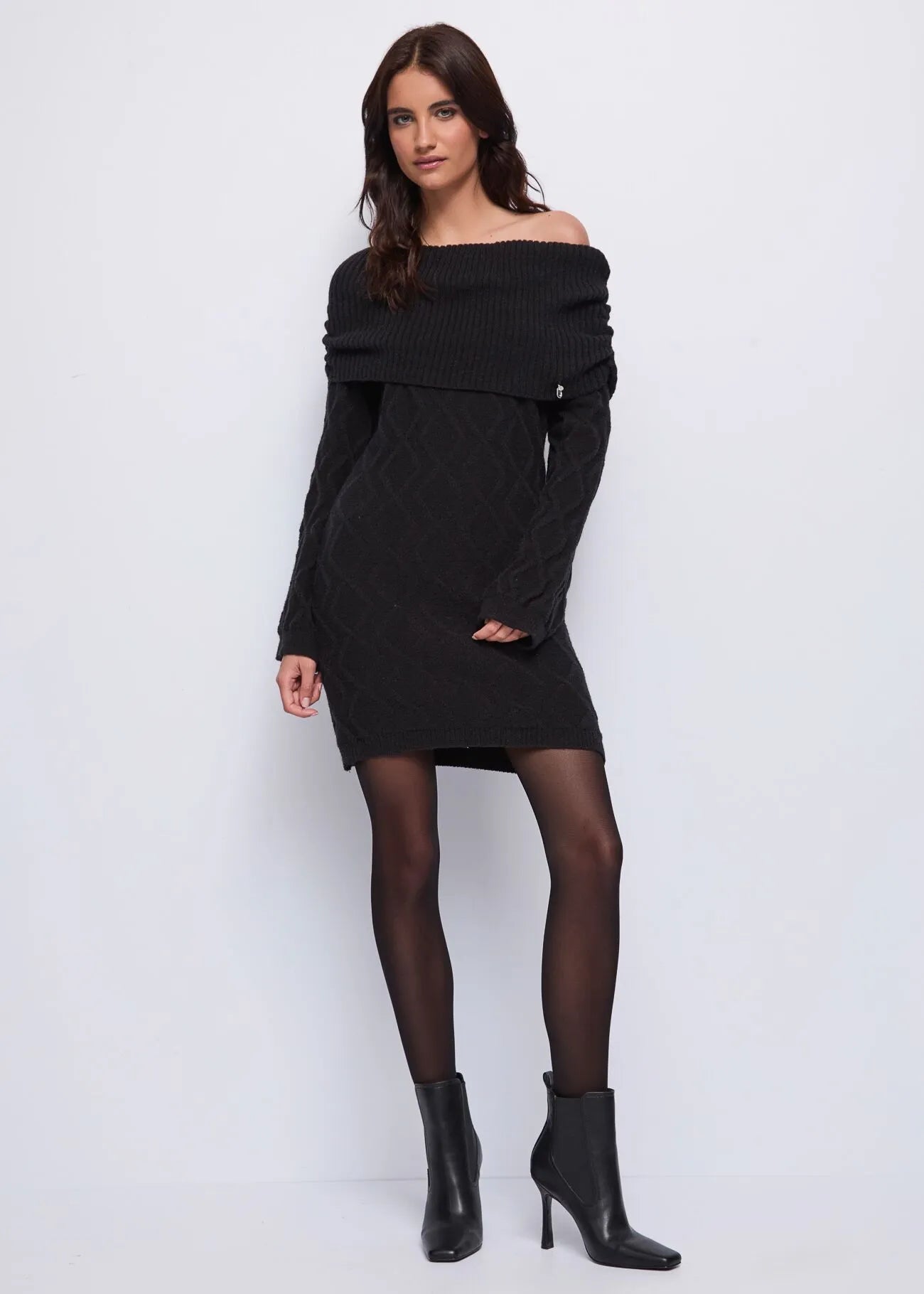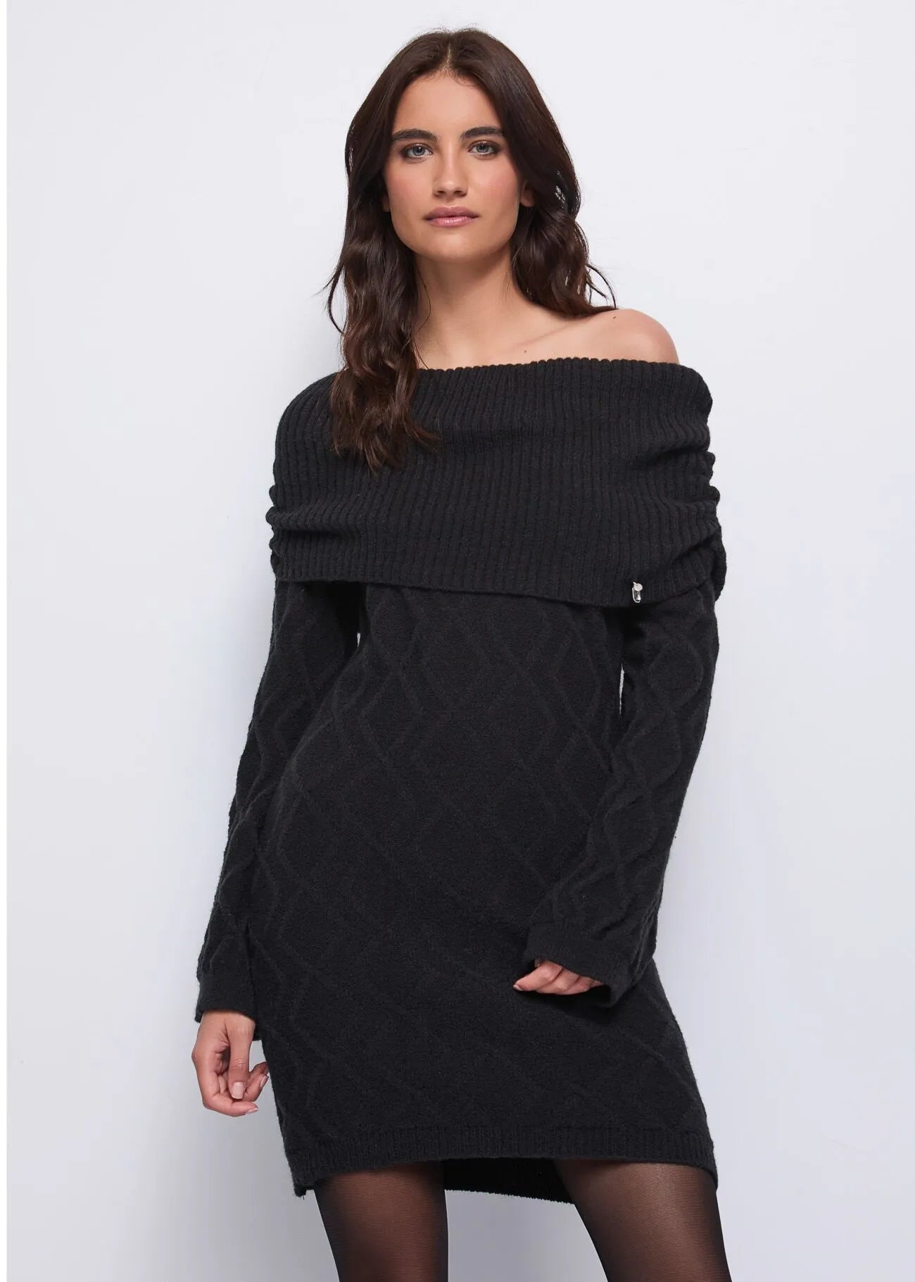 - Scollatura off the shoulder con Maxi Risvolto a costine